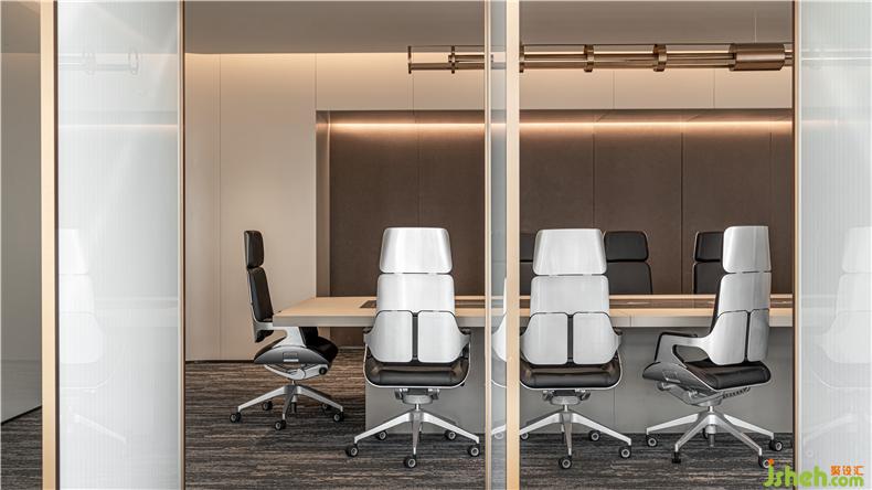作為頂級商務空間的辦公設(shè)計,一切都以高效為前提,會議室整體猶以白色墻面為主調(diào),淡金色為點綴,以灰色地毯將整個場景的氣息沉穩(wěn)收斂??臻g干凈、整潔、令人平心靜氣,高效辦公,呈現(xiàn)出“少即是多”的留白空間美感。