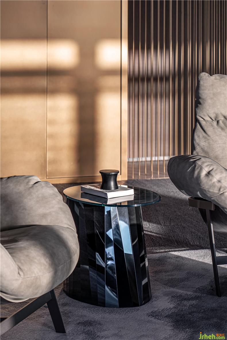 單人沙發(fā)組選用了德國(guó)品牌Classicon茶幾,藍(lán)色棱面金屬質(zhì)地,精致小巧,辦公室設(shè)計(jì)為整個(gè)空間帶來(lái)一抹特別的格調(diào)。品牌秉承著將高質(zhì)量作品推廣至全世界,追求雋永價(jià)值、原創(chuàng)精神與實(shí)用主義。注重形式與功能的平衡感,實(shí)用和美感是他們最珍視的,亦是設(shè)計(jì)師將其選入的原因。