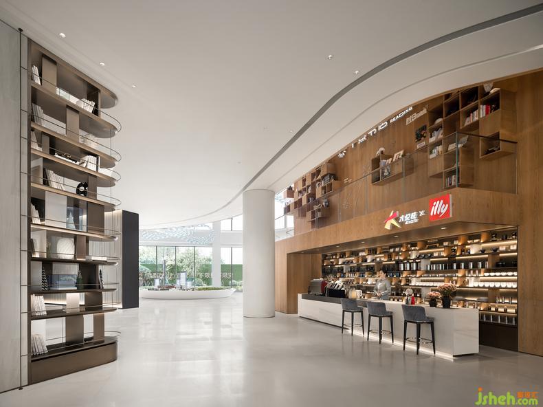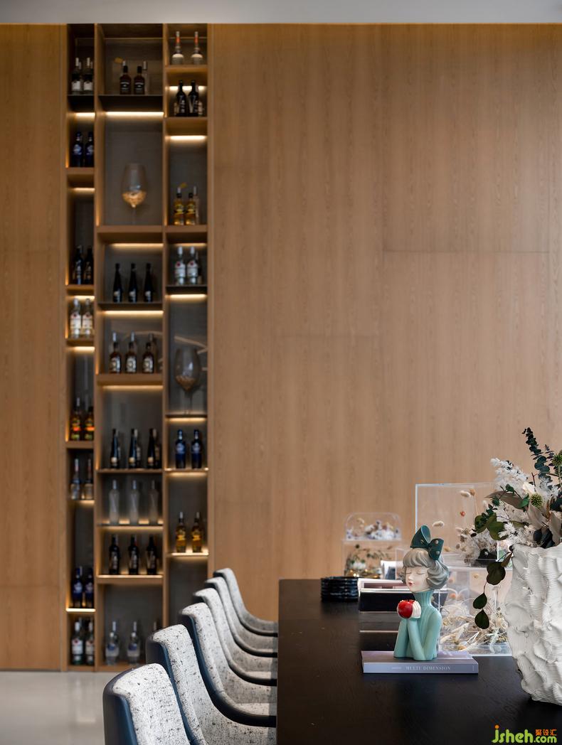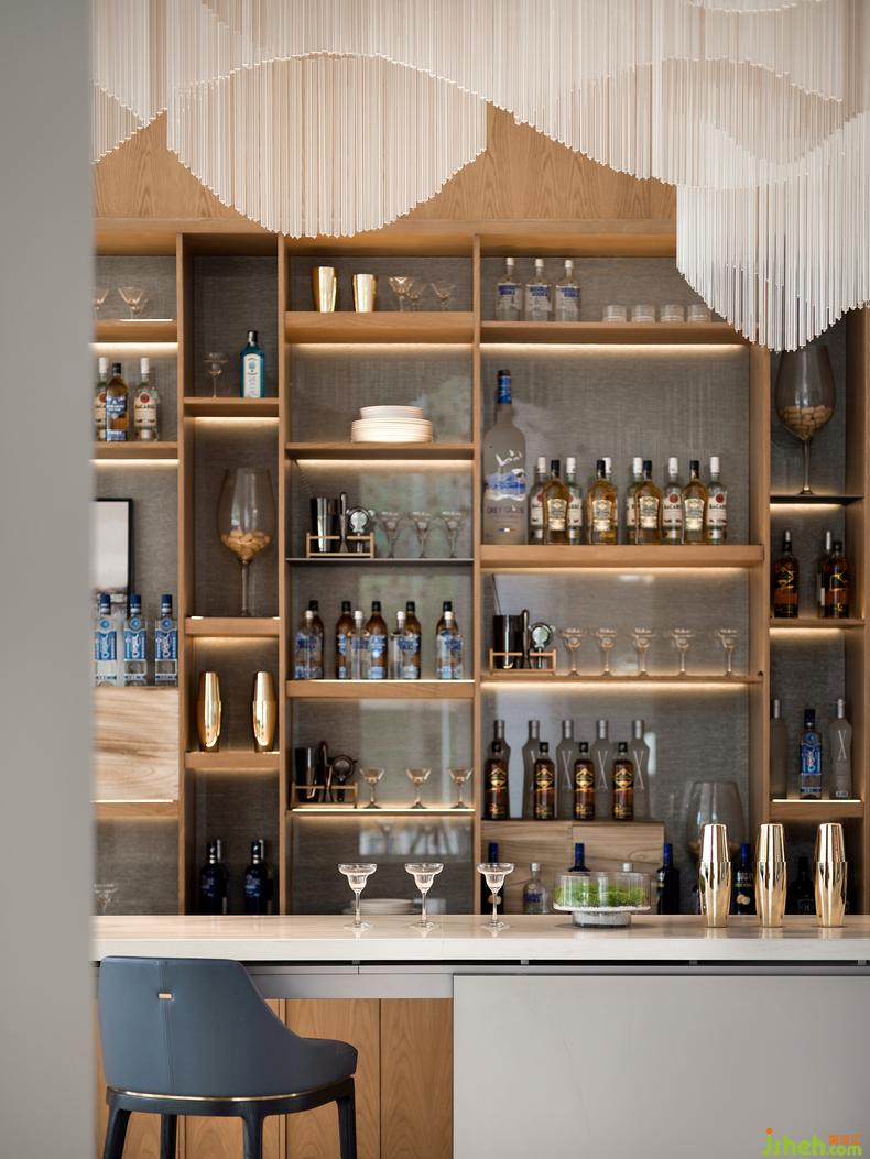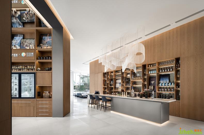 水吧臺(tái)以光與影、明與暗、曲與直、光滑與粗糲等多種對(duì)比來(lái)展現(xiàn)空間的深度和層次感,售樓中心設(shè)計(jì)創(chuàng)造了舒適且富有美感的體驗(yàn)空間。使人們以特定的態(tài)度或特殊的角度去重新發(fā)現(xiàn),凝視并感受生活。