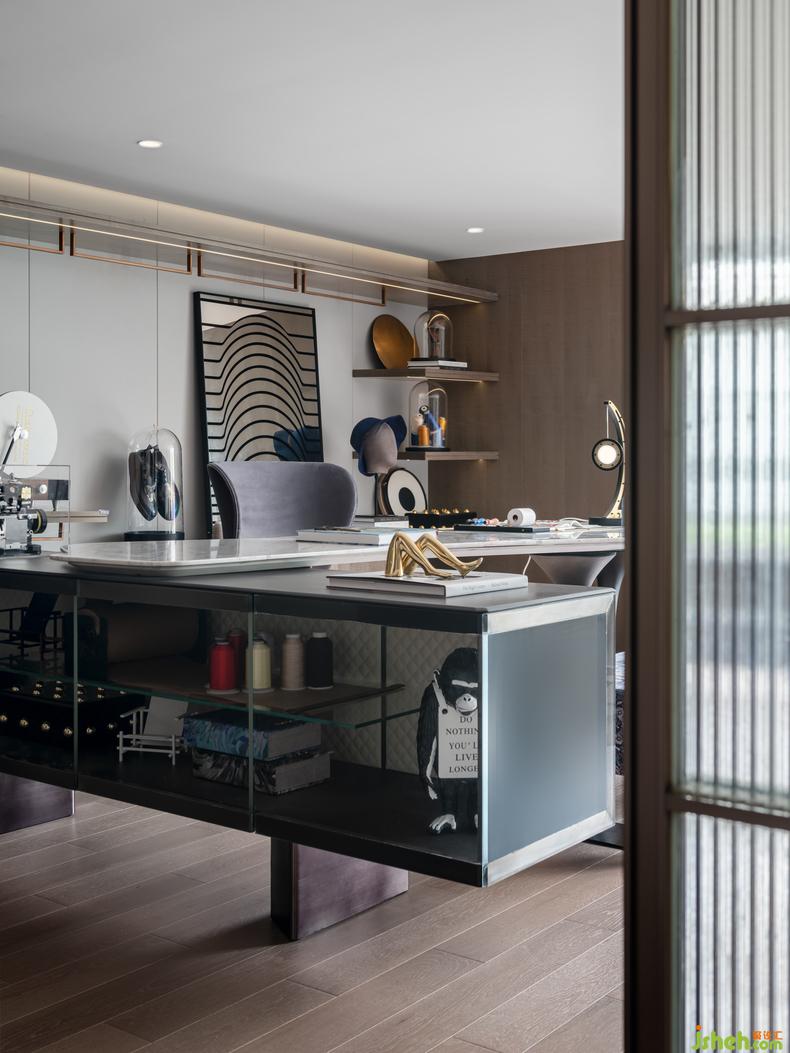工作區(qū)域風(fēng)格雅致溫潤(rùn),色調(diào)的和諧統(tǒng)一將高光通透、樣板房設(shè)計(jì)極具質(zhì)感的材料和物件襯托起來(lái),再結(jié)合不同材質(zhì)的灰色加以點(diǎn)綴,灰色中不乏亮點(diǎn)。體現(xiàn)出現(xiàn)代人對(duì)品質(zhì)生活的態(tài)度和細(xì)節(jié)追求。