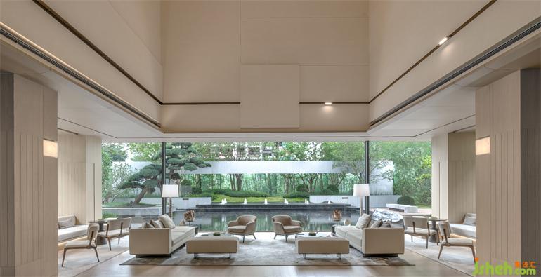 無規(guī)矩不成方圓,深圳營銷中心設(shè)計(jì)方為天圓為地,蒼松的綠映射了生活生機(jī)盎然的一面,軟裝以景中景的呈現(xiàn)手法,與窗外呼應(yīng),木質(zhì)、布藝、與地毯的組合關(guān)系,豐富了空間情緒。