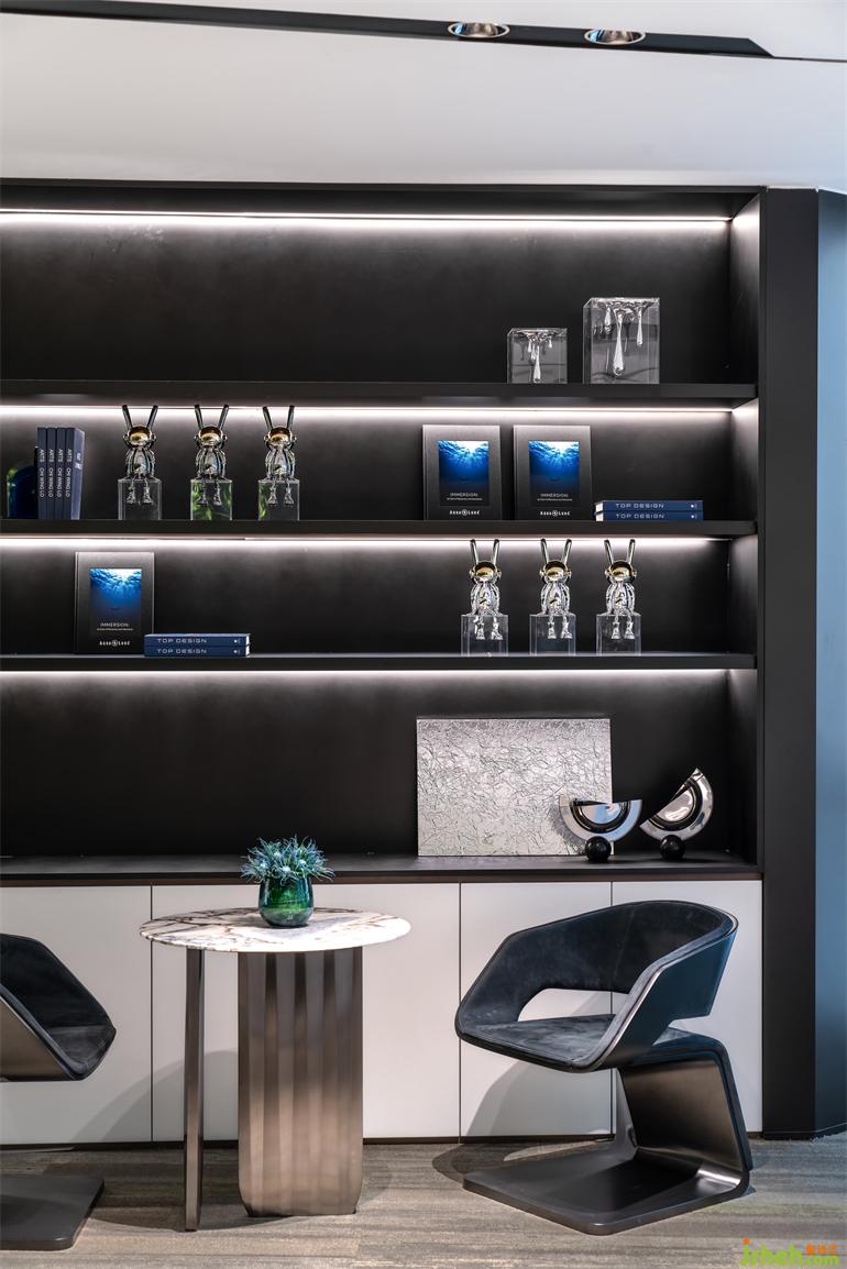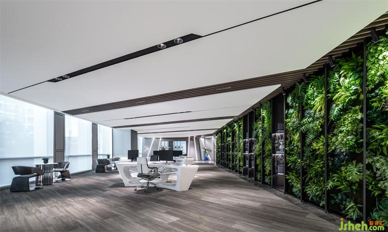 在空間中設(shè)置大面積的綠植墻,讓窗外的景觀及與室內(nèi)空間達(dá)成一種交互對(duì)話, 給予沉穩(wěn)的空間帶來一幕跳躍氣氛。