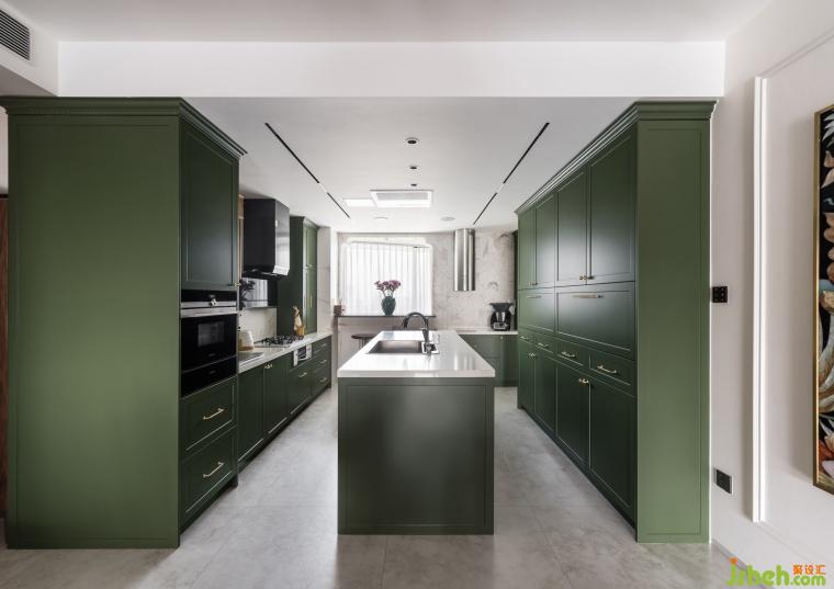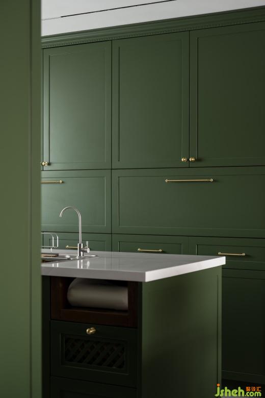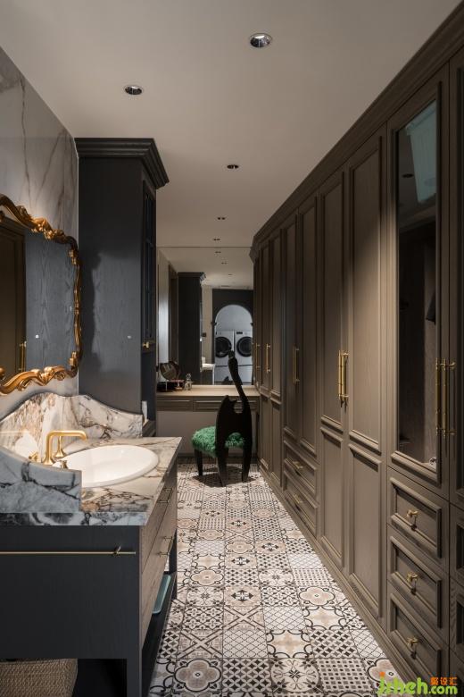 衣帽間融入了復古花磚點綴,綠色椅子呈現(xiàn)出獨有的品位,顏色搭配主打濃郁深沉,每一處角落都彌漫著日時光的迷人魅力。