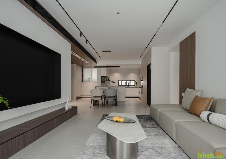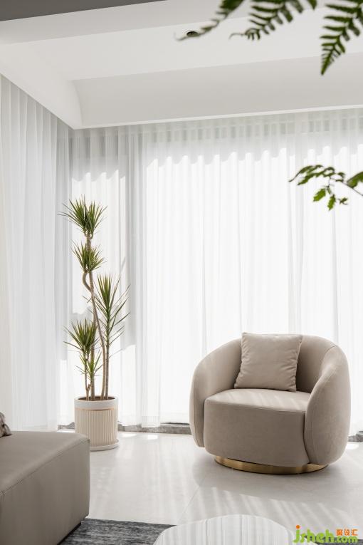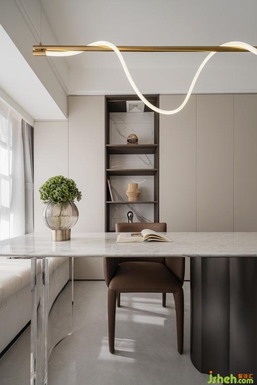 梁位的處理細(xì)節(jié),設(shè)計(jì)師通過(guò)燈光的排布以及弧度造型,盡可能的讓梁融入吊頂之間,通過(guò)弧度關(guān)聯(lián)梁位邊緣線,隱形的區(qū)分每一個(gè)空間。