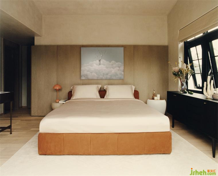 度合一衡在空間上并沒(méi)有進(jìn)行過(guò)度的裝飾手法,沒(méi)有做過(guò)多的硬裝材質(zhì)堆砌,只是被大面積暖白自然肌理感的涂料包裹,讓空間有了一種經(jīng)得住時(shí)間的考驗(yàn)的雋永。沒(méi)有以任何一種標(biāo)簽化的設(shè)計(jì)風(fēng)格為起點(diǎn),而是挖掘出獨(dú)屬于業(yè)主個(gè)性的第二居所的精神所在。相對(duì)于業(yè)主上一套住宅中克制與嚴(yán)謹(jǐn),在這里,設(shè)計(jì)師試圖幫他們卸下規(guī)訓(xùn)與責(zé)任外,回歸那個(gè)內(nèi)心熱愛(ài)藝術(shù)與生活的自己。