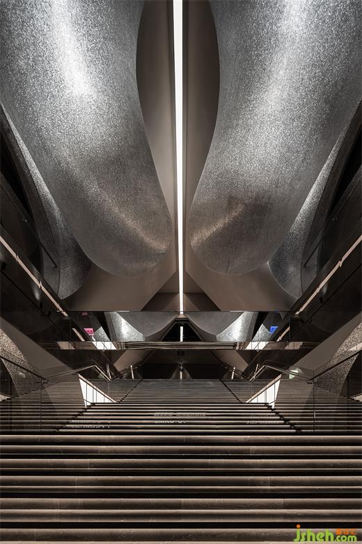沿著中央光帶的指引,踏上連接天地的綿延階梯,向著心靈深處的神秘邁進。墻面上躍動的光影,仿佛生命的脈搏。