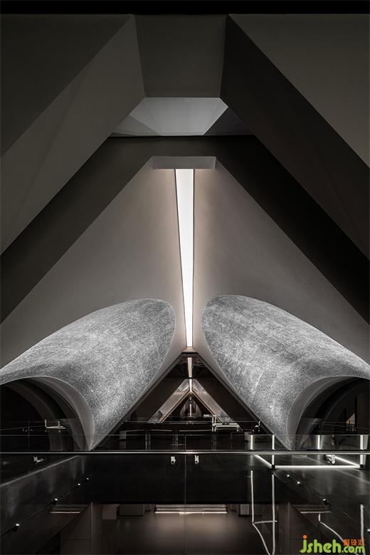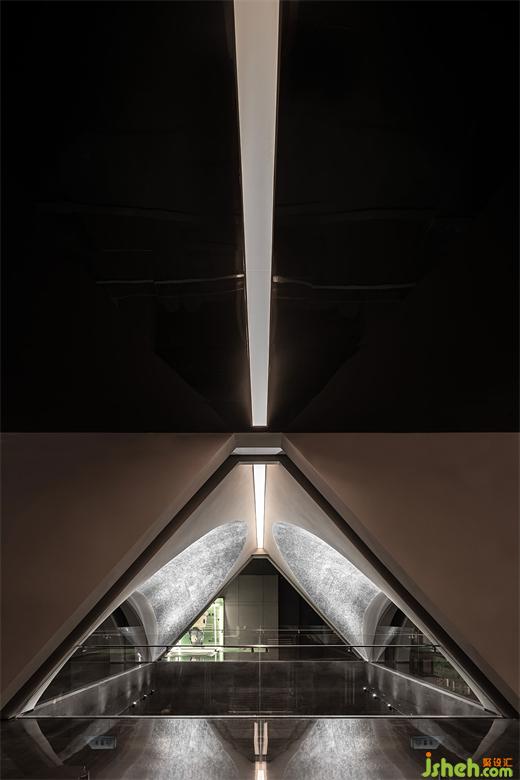 幾何結(jié)構(gòu)和光影交織出帶有哲思的冥想空間。當(dāng)代與古老、現(xiàn)實與虛幻、過去與未來此刻交融??臻g不僅是物理的存在,更是精神的凈土。無形的力量在涌動,孕育著新的希望與生機。