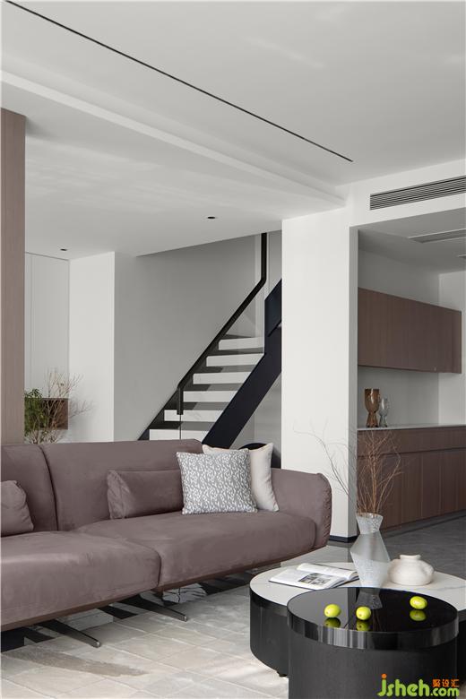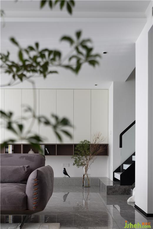 客廳最大的亮點(diǎn)是長(zhǎng)8m的大落地窗,復(fù)式裝修設(shè)計(jì)采光極好四季變換的信號(hào)總是能第一時(shí)間傳達(dá)到這里。家具擺放落落大方、有趣、有品位 , 點(diǎn)到即止,從而浪漫、溫馨且不失時(shí)尚感。極盡克制地使用點(diǎn)光源與綠植點(diǎn)綴其間,以設(shè)計(jì)語(yǔ)言的多樣性展現(xiàn)出業(yè)主獨(dú)特的生活美學(xué)。