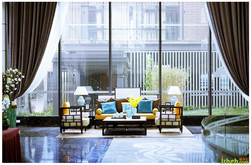 本項目通過對傳統(tǒng)中式庭院的深入研究,結(jié)合現(xiàn)代手法提煉造型元素,同時注入休閑元素調(diào)和中式建筑的嚴(yán)肅氛圍。利用大面積落地玻璃,銷售大廳將周邊山水風(fēng)光收入眼簾,最天然的帷幕,最緊密的交互,山林湖泊,蟲鳴鳥叫,將是生活的一部分。