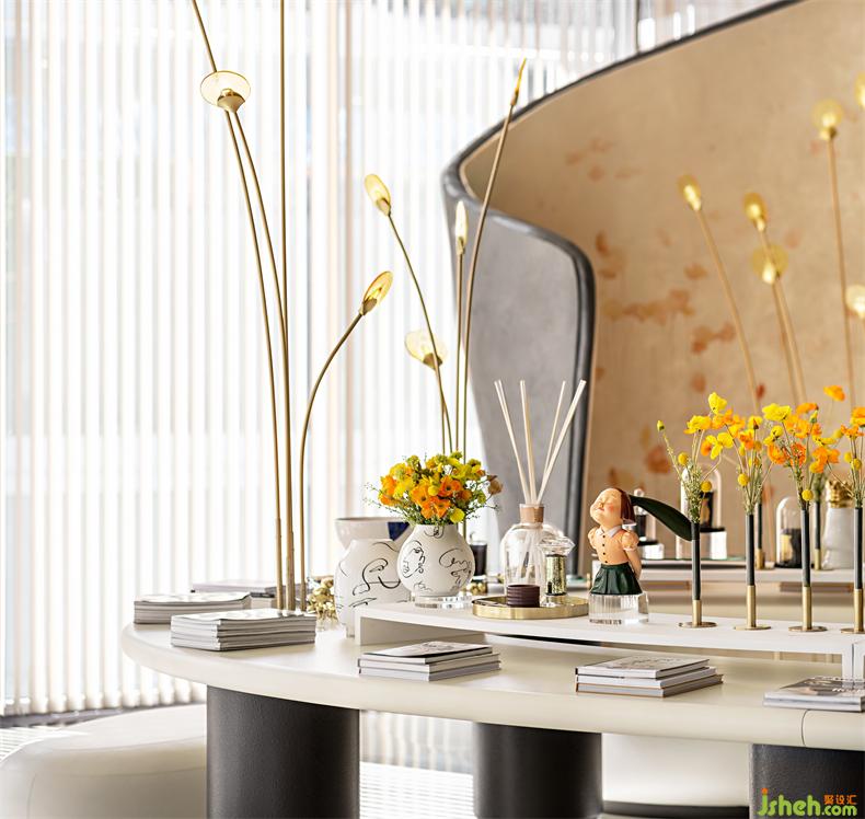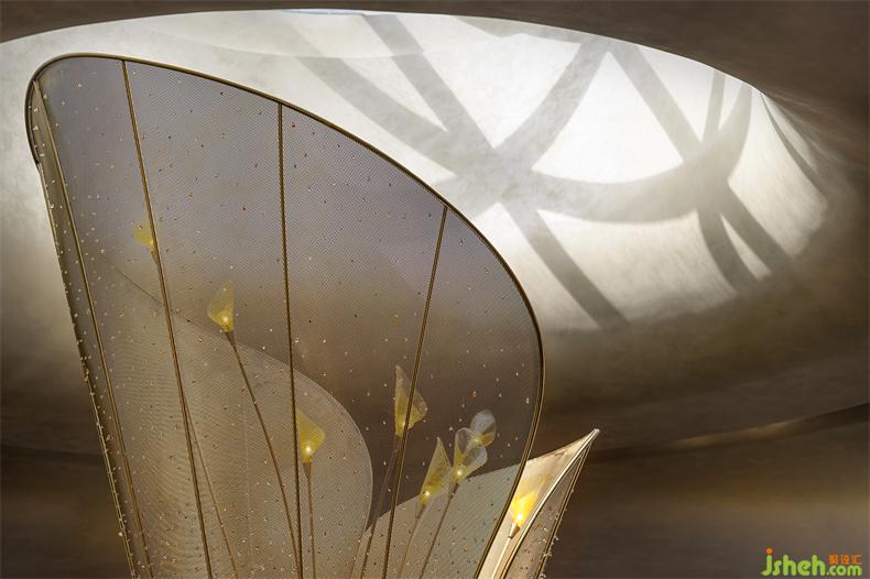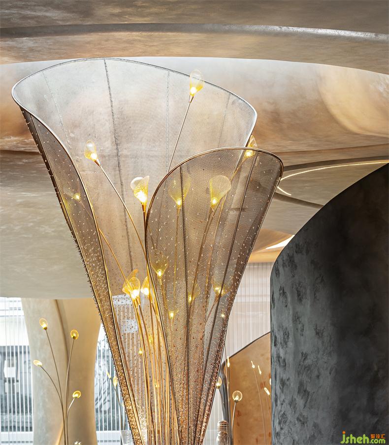 水吧中心的藝術(shù)裝置納光之形,幻化成一朵向上盛開的花瓣,室內(nèi)設(shè)計(jì)師從空中舒展開來,用一朵花開的時(shí)間,點(diǎn)亮陰影下,生命的那一簇可能性。