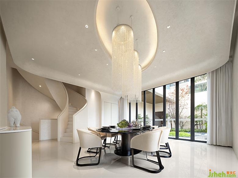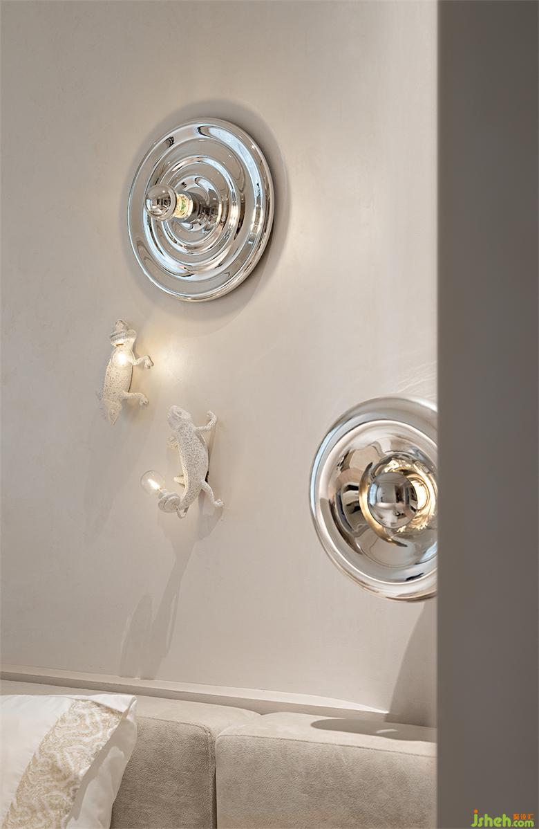 “虎與蝶”的裝飾畫植入了整個會客廳的不同區(qū)域,包括各個走廊,圓形畫框呼應廊道弧線,廊道蜿蜒而下,像一張卷曲的畫卷。南寧別墅裝飾空間在光影的變幻下,靈動而飄逸,美感與靈性帶來的滋養(yǎng),讓精神層面的憧憬,成為了可落地的棲居場景。
