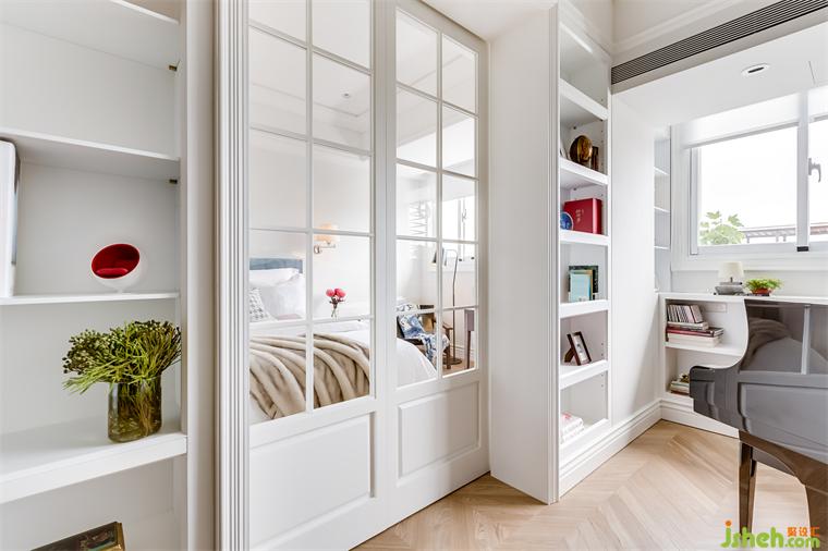 6. 臥室透過(guò)法式格子門看出去,就是女主人鐘愛的演奏鋼琴,一旁大片的采光讓經(jīng)常需要在家寫書的男主人,備感溫暖舒壓。