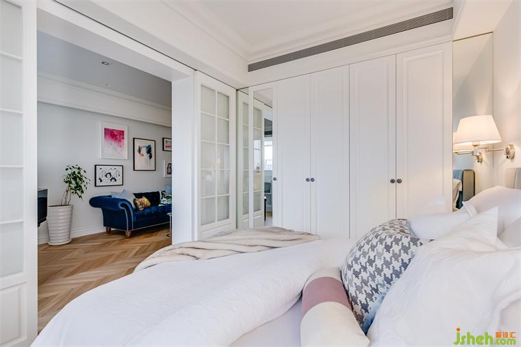 2. 臥室的門片為法式格子拉門,希望門片正對(duì)著床尾,實(shí)踐強(qiáng)調(diào)對(duì)稱性法式美學(xué)。