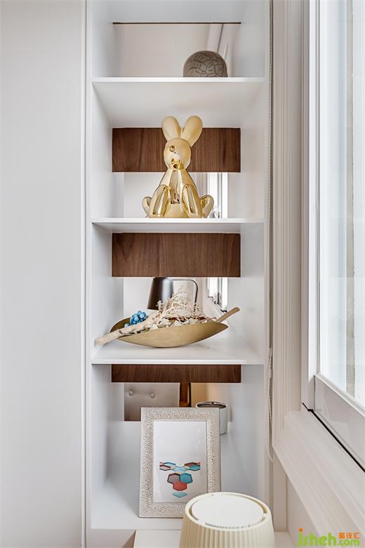 3. 電視柜的設(shè)計(jì),以擺放書籍的機(jī)能性為主,開放柜讓客廳的尺度更為開擴(kuò)