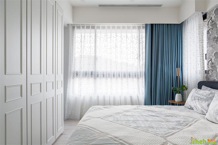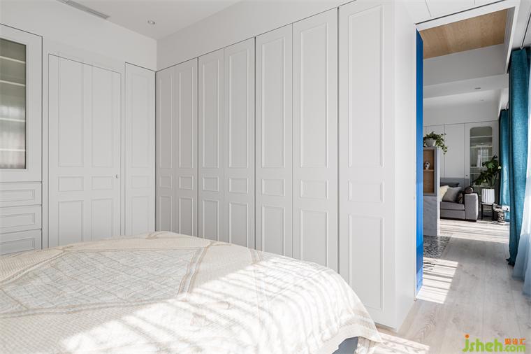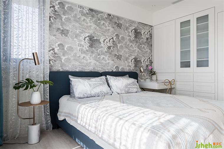 大平層設(shè)計(jì)團(tuán)隊(duì)將主臥房門移至落地窗的長(zhǎng)廊上,利用面窗優(yōu)勢(shì),長(zhǎng)排陽(yáng)光走廊一路從主臥,經(jīng)過(guò)餐廳中島至客廳,自然光與窗外延續(xù)的山景成為視覺(jué)串聯(lián)。有別公領(lǐng)域的色彩豐富,主臥選用灰白基調(diào),女主人希望在休憩空間也可以營(yíng)造低調(diào)華麗的舒適感,細(xì)致的透花窗紗,精制的浮云圖騰呼應(yīng)公共空間的活潑地磚,傳統(tǒng)與現(xiàn)代在這里極致混搭。