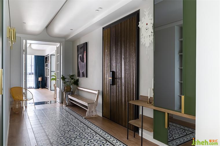 男屋主之前于英國留學(xué),并在歐洲生活過一些日子。初次與屋主洽談的時候,言談之中,觀察到他的舉止之間都充滿了優(yōu)雅,對房子的動線以及開門進(jìn)門的方式很有自己的想法。于是設(shè)計師以屋主重視的法式雙開門為主軸,由大門進(jìn)入到玄關(guān)長廊區(qū),即份左手邊為私領(lǐng)域,右手邊為公領(lǐng)域。