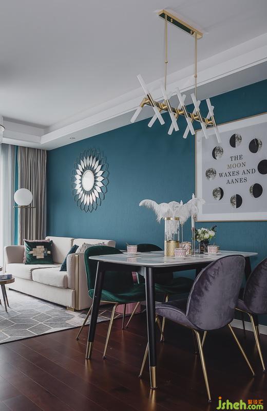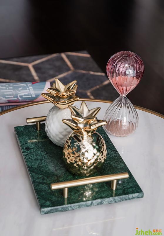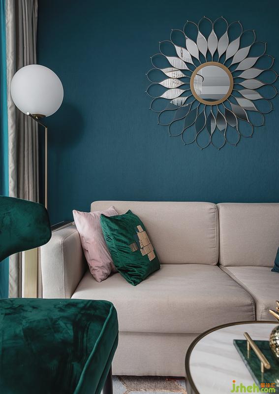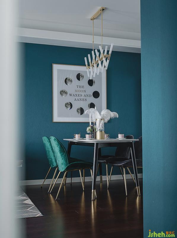 ▲整個色系設計師采用了孔雀綠+香檳金元素,水晶+鏡面+絨面代表奢華,精致和細膩。如同生活,縱然有諸多無奈,柴米油鹽之外縱然也需要一些儀式感,而只要能晨觀日出,暮賞霞落,就是一種簡單的幸福。