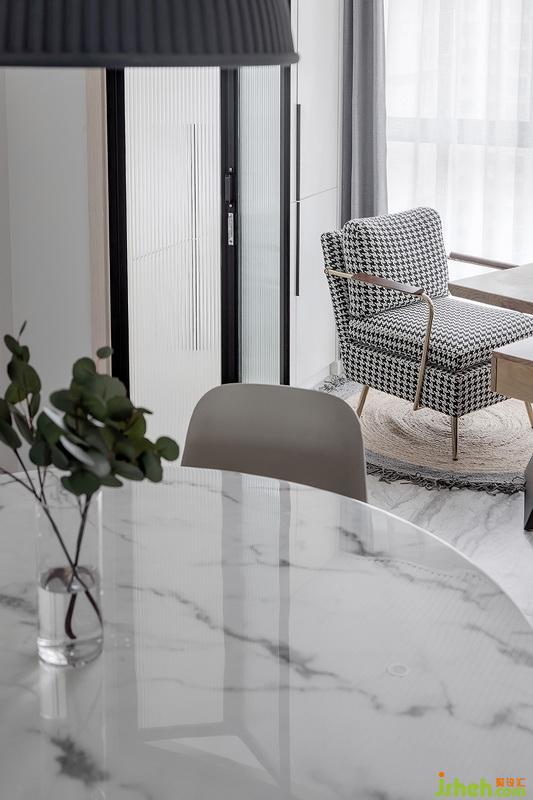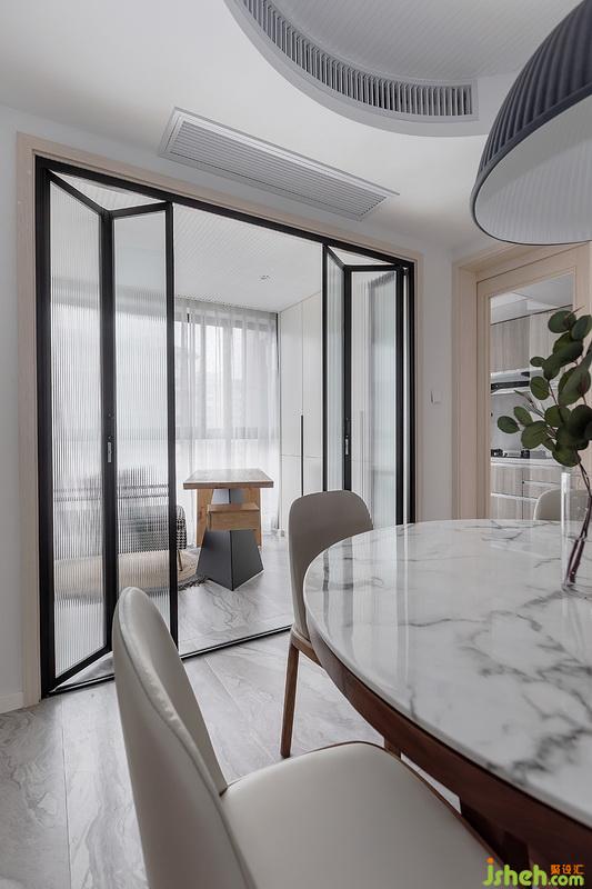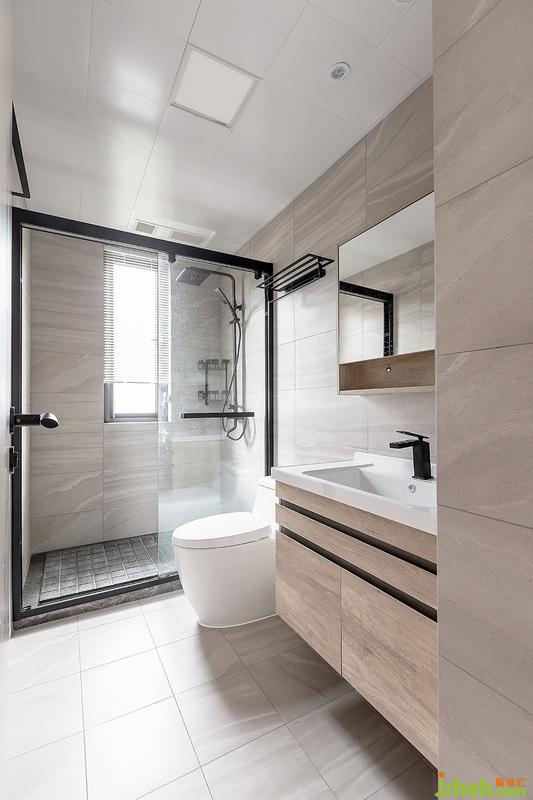 廚房采用的是雙飾面材質(zhì),擁有了天然木紋的質(zhì)感,同時(shí)兼顧后期油漬的清洗;而衛(wèi)生間淋浴房則選擇了天然的火燒板,拉槽處理+火燒面特征,使得淋浴防滑和自然人文氣息。