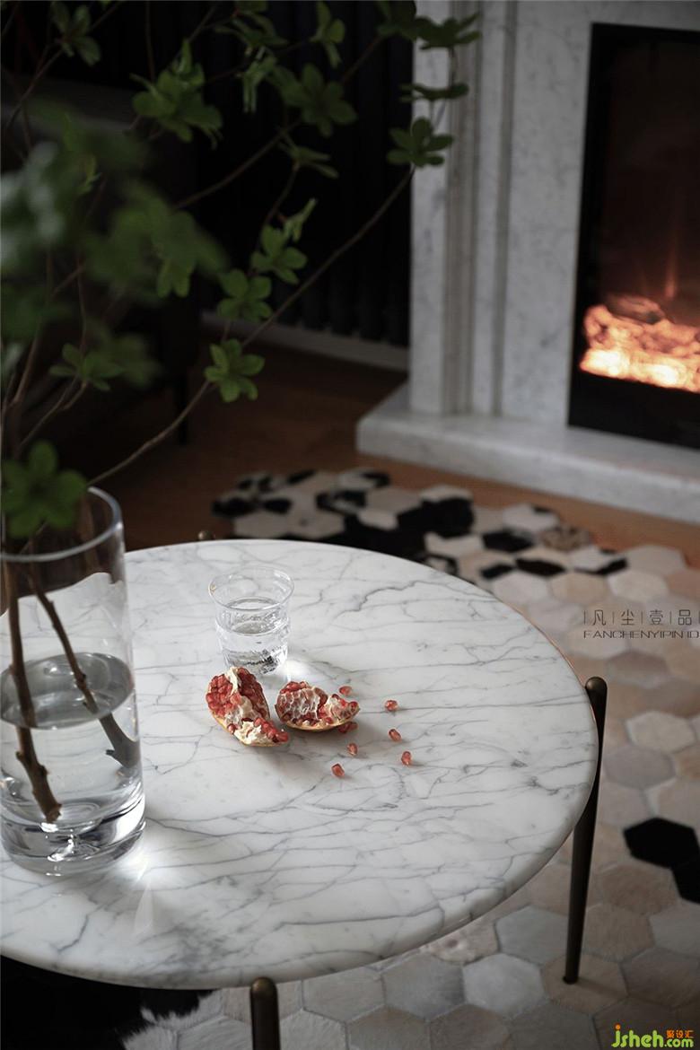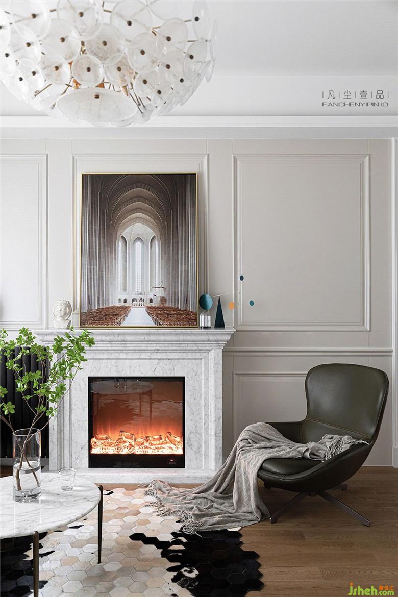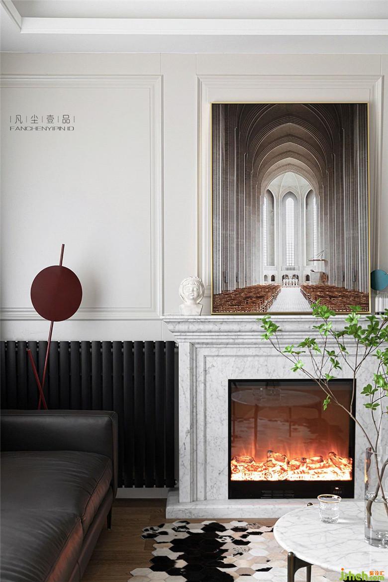 新加的大理石壁爐可能其本身的意義并不在于采暖,因為設(shè)計師從功能上已經(jīng)把采暖片放到了這個角落,作為烘托溫馨的家居氛圍而存在,柔軟且有型的皮質(zhì)沙發(fā)可以讓居家多一絲干練,不慌不忙的感覺剛剛好。