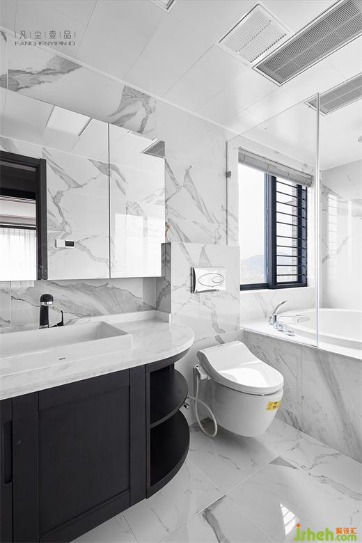 大水墨紋瓷磚、不管搭配深色木質(zhì)或淺色木質(zhì),都能很好的融合在一起,而功能型的設(shè)計(jì)也不可或缺,鏡柜+衛(wèi)生間水空調(diào)+人性化置物架讓生活細(xì)節(jié)處彰顯便利。