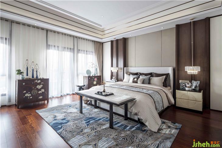 主臥套房設(shè)計(jì)整體呈現(xiàn)出雅澹明潔的視覺風(fēng)貌,棕色的胡桃木飾面,細(xì)節(jié)處糅合著玫瑰金不銹鋼,格調(diào)優(yōu)雅,內(nèi)斂自然。中式鑲花裝飾柜,自然云紋地毯,點(diǎn)染著傳統(tǒng)文化的精妙筆觸。盈盈自然光透過白色的紗簾,為空間帶來一種安靜祥和的氛圍。主臥衛(wèi)生間同樣散發(fā)出素雅寧?kù)o的氣質(zhì),一幅中式屏風(fēng),花鳥寫意之間,自然靈韻悄然而出。