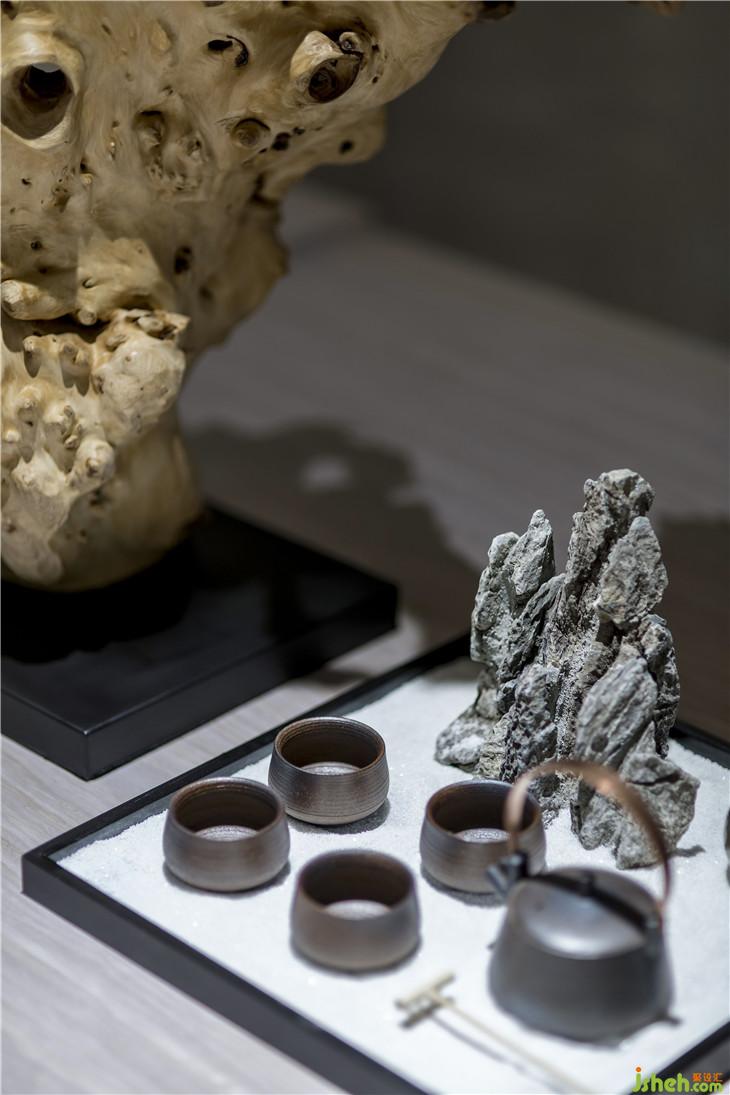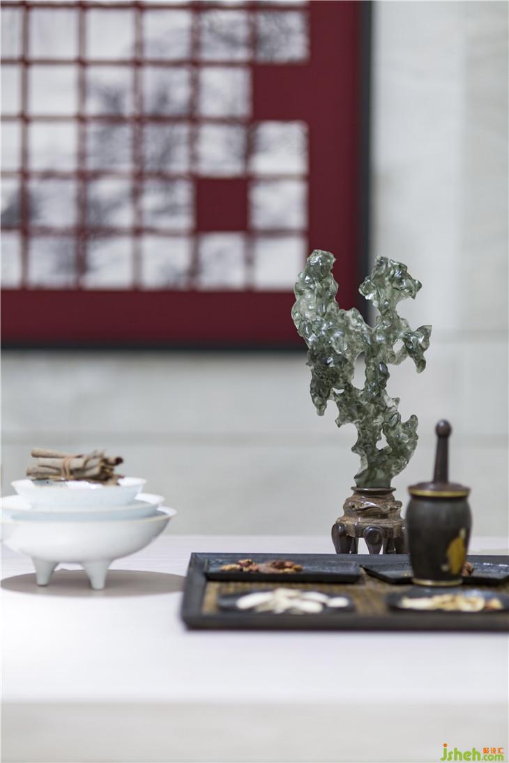 層層疊疊的白色垂簾,山水氤氳的清雋之姿淡淡描摹其上,一張未經(jīng)雕飾的木桌,設(shè)計(jì)整體上力求突出中國(guó)傳統(tǒng)的美學(xué)精神,營(yíng)造處一個(gè)能夠凈化心靈、安養(yǎng)心神的簡(jiǎn)凈空間,靜享生命中清淡的歡愉,在杯水茶盞、筆墨棋格間,尋覓生命最本真的悠游狀態(tài)。