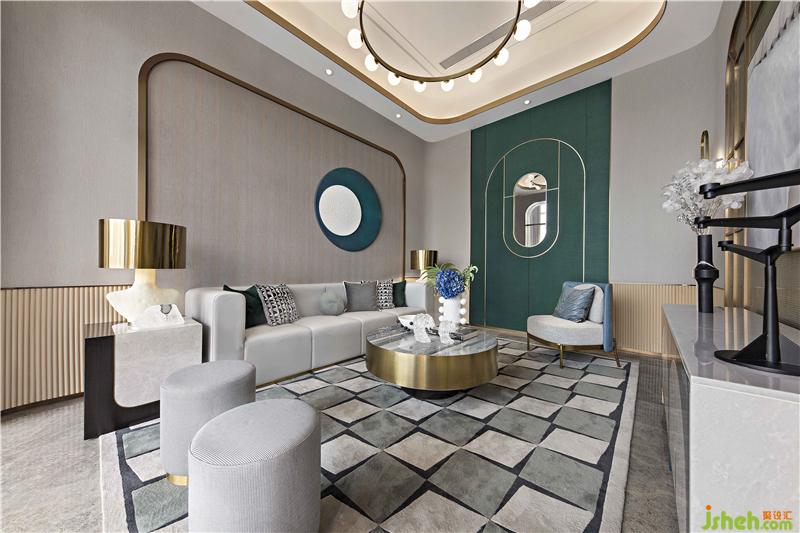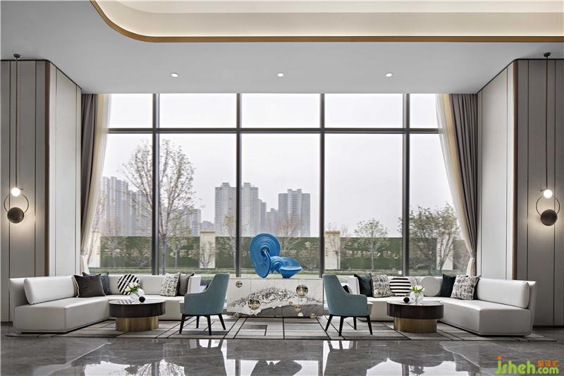 洽談區(qū)奶白的色調(diào)勾勒簡(jiǎn)潔、寧謐的商談氛圍,翡翠綠與透明小水晶疊合而成的裝飾吊燈,星光點(diǎn)點(diǎn),觥籌交錯(cuò)。有序的線條適度糅合,豐富了空間的層次,浪漫感與文脈精神合為一體,增加空間的藝術(shù)感染力。