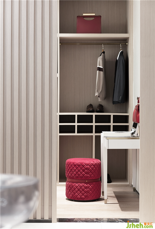 溫柔的布藝與冷靜的理石,經(jīng)典的紅色與現(xiàn)代潔簡的材質(zhì),在時(shí)尚基調(diào)之中,設(shè)計(jì)在甜美與干練之間達(dá)到不可思議的平衡。以一種隱喻的設(shè)計(jì)手法,詮釋當(dāng)代獨(dú)立女性可鹽可甜的多重個(gè)性。