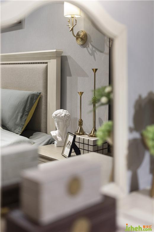 本案提取了豐收的黃色、自然茂密的綠色和天空的暖灰藍(lán)色作為主要色系。室內(nèi)空間的背景墻、地毯、窗簾、床上用品等都來(lái)自這三大色系。同時(shí)展廳設(shè)計(jì)師提取文藝復(fù)興時(shí)期的相關(guān)圖案進(jìn)行藝術(shù)化升華,將這些符號(hào)、元素巧妙的運(yùn)用到電視背景墻、掛畫、窗簾布藝之中,成為寶蕓邸獨(dú)有的圖騰。