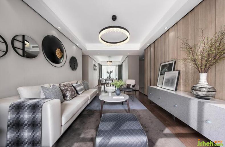 洋房122戶型運(yùn)用木飾面結(jié)合墻面壁紙,舒適而透亮。色調(diào)以明靜清透的白色為基底,運(yùn)用開放性設(shè)計(jì)手法,令空間開闊統(tǒng)一,洋溢出年輕化氣息。
