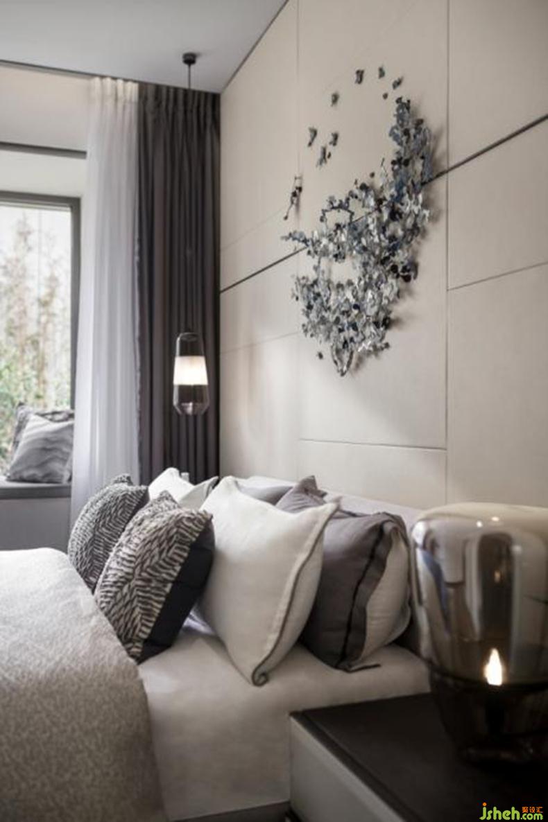 主臥與公共區(qū)域元素呼應(yīng),黑色金屬嵌條分割手法延續(xù)客餐廳的風(fēng)貌,米白色床頭背景墻更顯協(xié)調(diào),兩側(cè)利用黑金屬嵌條收邊處理呈L型轉(zhuǎn)折至頂,形成立體化多層次的聯(lián)系。柔和的色調(diào)讓人卸下疲憊,進(jìn)而營造出輕松、愜意的氣氛。