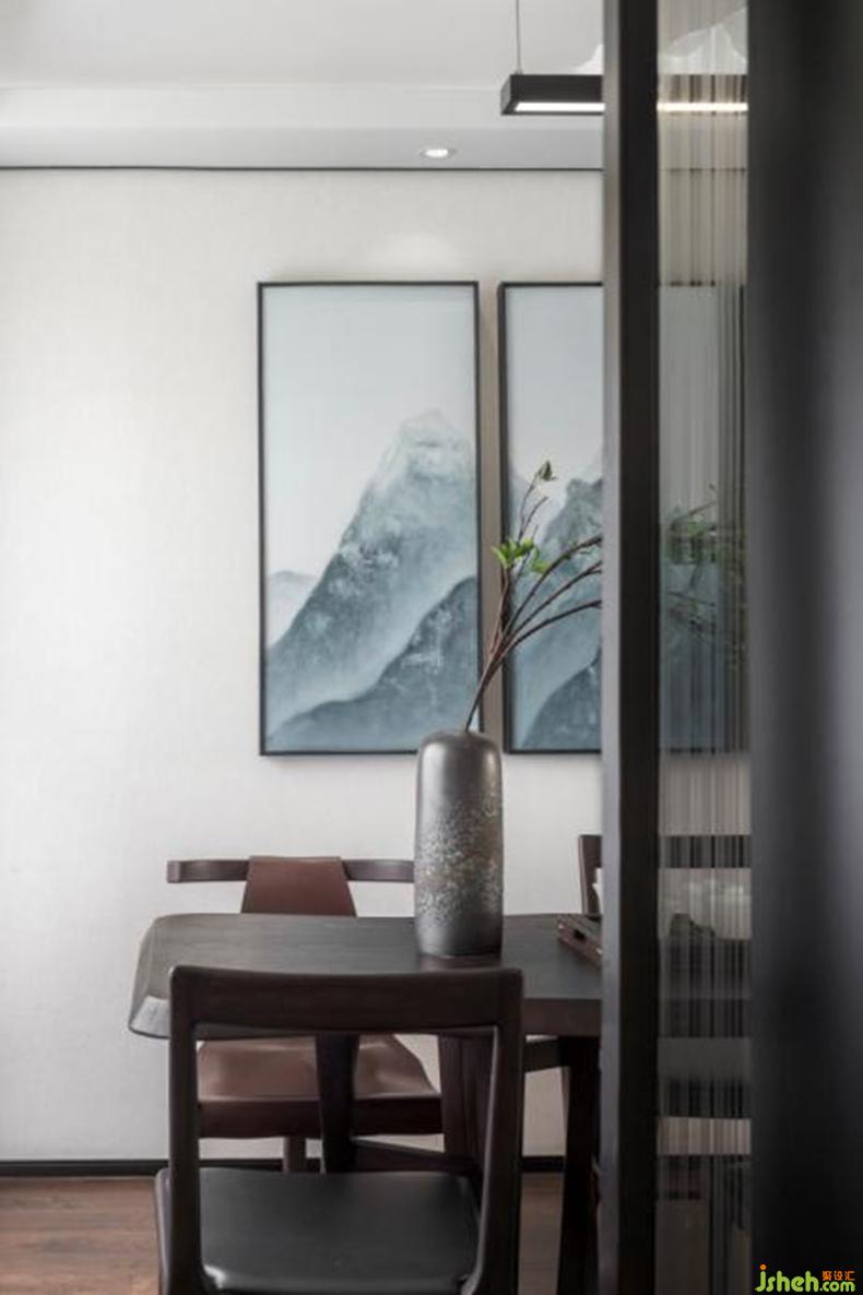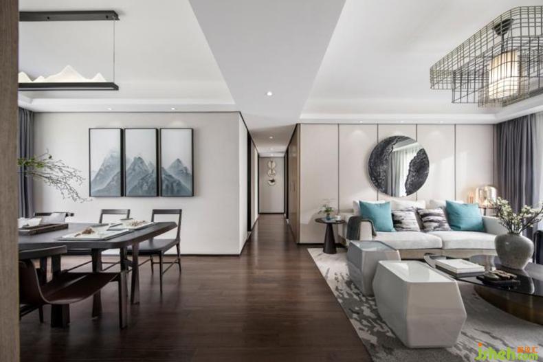 入戶便可感受中式對稱嚴謹布局,圍合式吊頂框出各功能分區(qū),視線隨著過道延伸而去,恬然閑適正是其最美好的模樣。