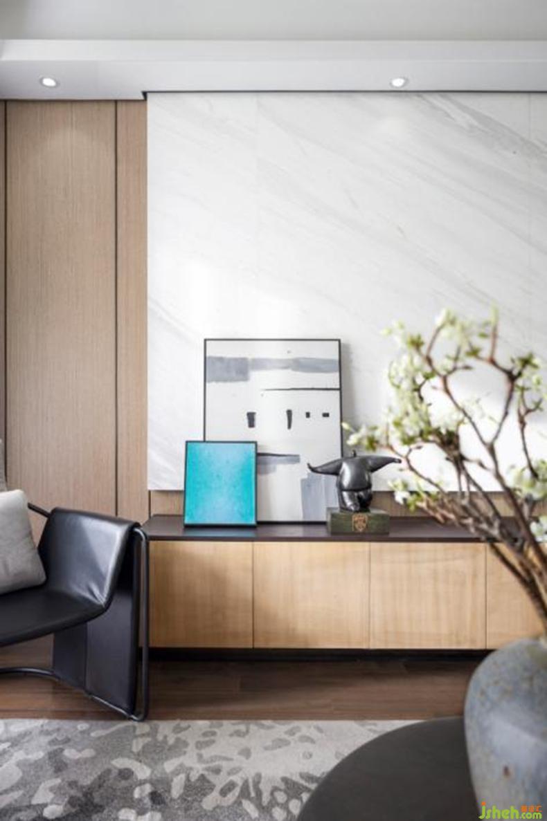 主要材料 | 木皮染色飾面、爵士白大理石、壁紙 、皮革、金屬板鍍黑鈦