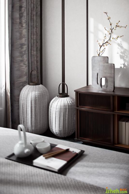 淺色系統(tǒng)合的長輩房,平和靜謐,似有古雅雍容的境界。上方飄逸的掛畫與韻律明顯的柜體為長輩房增添了協(xié)調(diào)感。紫色、灰色、褐色、黑色、銀色,在室內(nèi)設(shè)計師的巧思布置下多而不雜,和諧互融。茶具、梅花、風(fēng)燈粉飾其中,進一步彰顯出幽靜的生活氛圍。