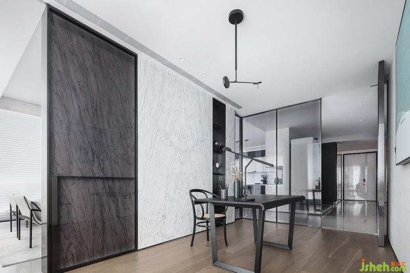 室內(nèi)設(shè)計(jì)師提取烤漆材質(zhì)的黑白色反差,從材料、細(xì)部和營(yíng)造方式上窺見(jiàn)輕巧風(fēng)范。