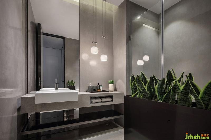 客衛(wèi)半嵌式臺(tái)盆搭載內(nèi)凹式收納,外加高級(jí)灰的渲染,綠植的點(diǎn)綴,有效增添空間立體感與對(duì)比性。