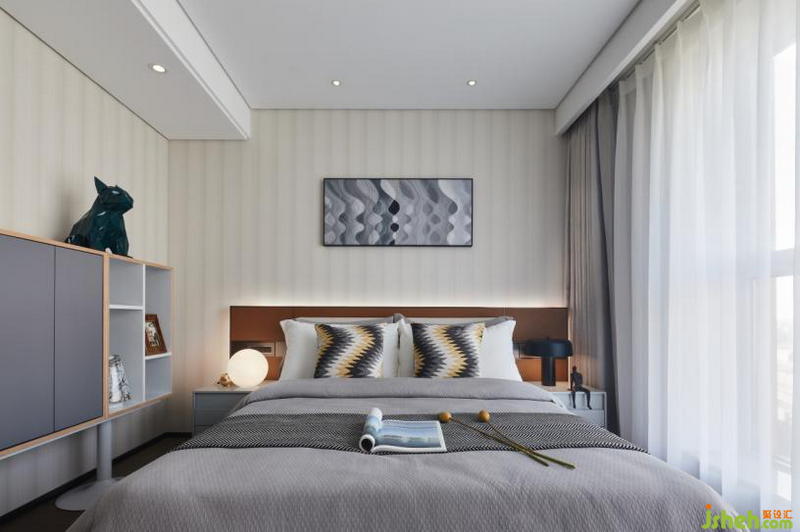 男孩房延續(xù)了灰調(diào)元素,顯著的紋理感塑造出干練有序的風(fēng)貌,既理性克制,又具動(dòng)感活力。