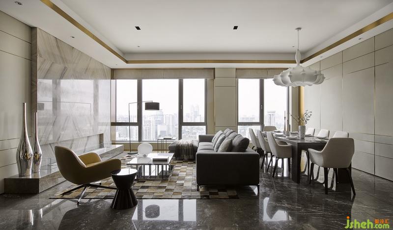 主要材料| 拿鐵灰石材、珍妮灰石材、古銅、黑胡桃木、珍珠魚皮、壁布