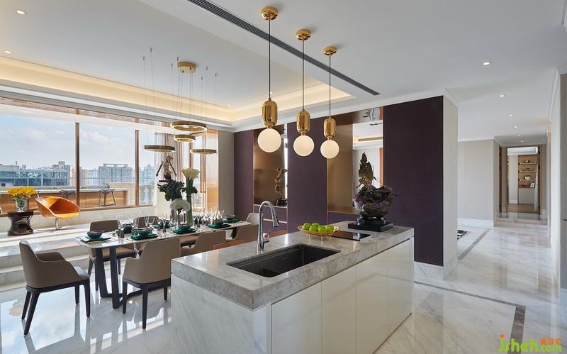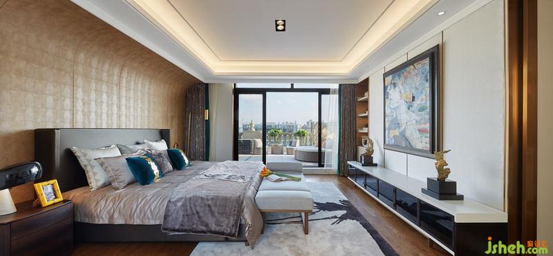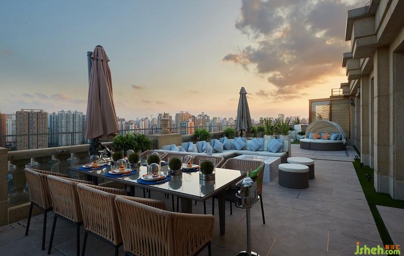 無論外面的露臺,還是室內(nèi)的吧臺,餐廳、廚房、家庭廳、浴室都能看到外灘的景色。整體風格偏曼哈頓風,現(xiàn)代前衛(wèi)又有優(yōu)雅的藝術(shù)氣質(zhì)。在設(shè)計手法上匯集全球多元文化,展現(xiàn)出國際都會的夢幻色彩與超脫浮華的高雅氣質(zhì)。