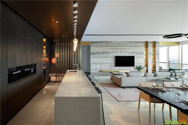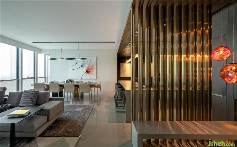 “坐擁高層建筑優(yōu)勢(shì)之余,我們以頗為擅長(zhǎng)的現(xiàn)代簡(jiǎn)約設(shè)計(jì)手法展開空間多維描述,融合當(dāng)?shù)氐奈幕諊c城市動(dòng)脈,精心策劃現(xiàn)代都市人的生活方式,將整個(gè)空間全面聯(lián)動(dòng),最大化挖掘空間的功能性、審美性與宜居感,力求打造自由舒適的都市新風(fēng)尚?!耙忌嵩O(shè)計(jì)團(tuán)隊(duì)如此概述。室內(nèi)設(shè)計(jì)師