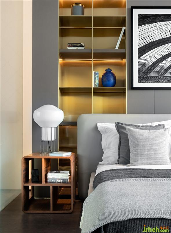 為營(yíng)造極致的居住體驗(yàn),設(shè)計(jì)師頗費(fèi)心思地引入生活儀式感。進(jìn)入主臥套間即是開(kāi)放式衣帽間相迎。主臥背景墻采用特殊定制的金屬網(wǎng),以其深色調(diào)金屬塑造沉穩(wěn)、質(zhì)樸的氣息。內(nèi)部與衣帽間、衛(wèi)浴的界限也得以弱化,賦予居者卓闊的空間享受。