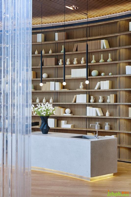 弧面的水吧臺(tái)銜接著樹屋和洽談區(qū),懸浮、穿插、塊面手法的綜合運(yùn)用,塑造簡(jiǎn)練風(fēng)貌之余,又有跳脫之姿。這里也為親子間的烘焙、手作提供了舞臺(tái),在身體力行中凝聚起幸福感和創(chuàng)造力!