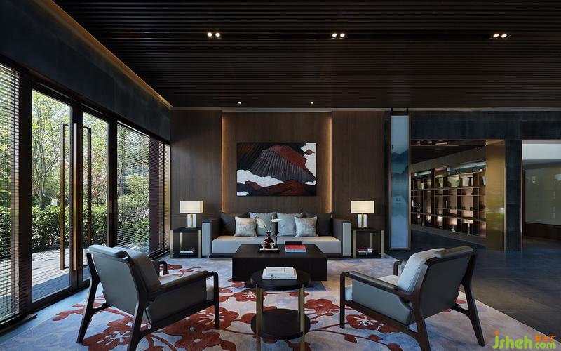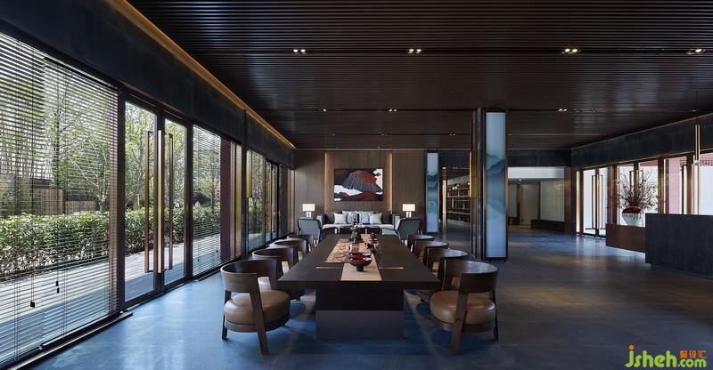 杭州與茶天然有著某種妙不可言的緣分,生活藝術(shù)館內(nèi)茶室與會客區(qū)一體而就。把絕佳位置留給茶室,框取典型的江南風(fēng)光入畫,空間的起伏層次逐步顯出。以山水圖紋的夾絲玻璃嵌入金屬框架弱化原有承重柱體,既是美的展示,又適宜分割。