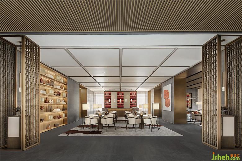 淺度洽談區(qū),左右對(duì)稱,尊崇禮制,門(mén)洞與展示格架大小相同且彼此對(duì)應(yīng),頂部同樣為印章輪廓組合而成,讓水吧臺(tái)背景退到最末端,譜寫(xiě)一場(chǎng)深與淺、光與暗、近和遠(yuǎn)的和諧奏鳴曲。在陳設(shè)上則精心擷取了具有通透質(zhì)感的琉璃,古典的造型,質(zhì)樸的色澤,都恰到好處。