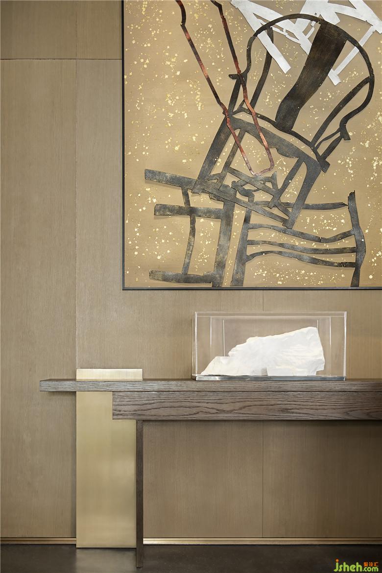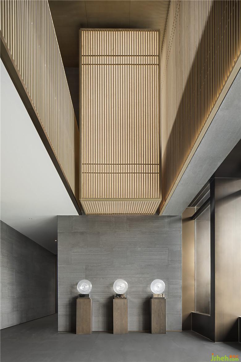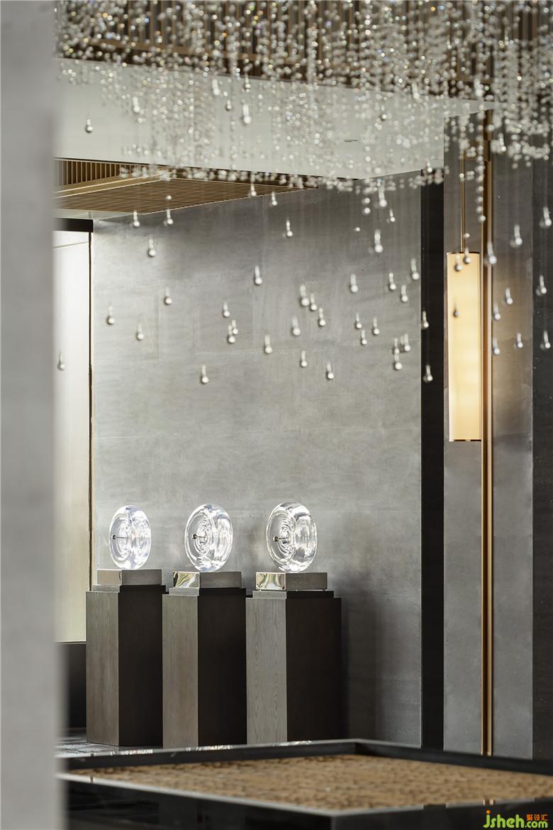 后廳兩端藝術(shù)裝置呈矩陣對稱分布,延續(xù)了古老東方的嚴(yán)肅審美。在材質(zhì)多元的形態(tài)下,又極具層次變化。