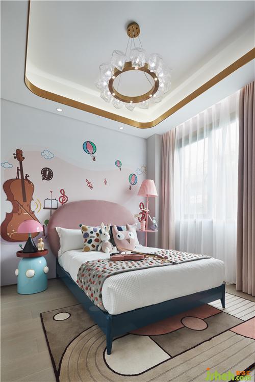 適度的粉嫩昭示小公主的私人領地,以馬卡龍色配合低飽和度的色彩進行疊加組合,輔以音樂元素妝點,一種歡快、活潑、靈動與童趣充盈其間。