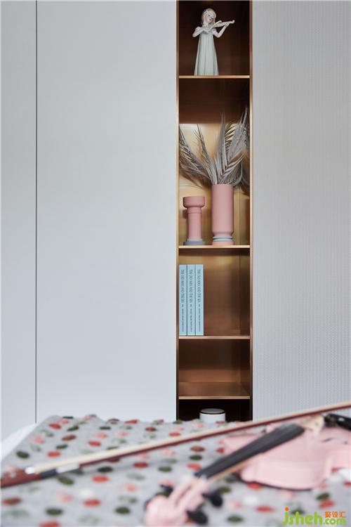 套間一隅設獨立衣帽間,并嵌入燈帶為其添上獨特的情調。這既是空間的合理化利用和居者需求的完善,亦是生活品質的縮影與細節(jié)的極致追求。