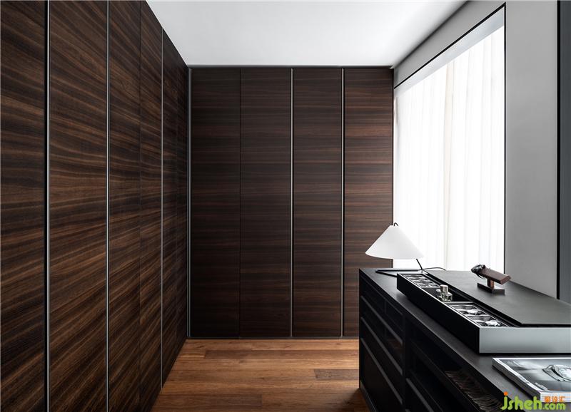 男女主人的衣帽間彼此相鄰,又因動(dòng)線的合理設(shè)置保證了使用上的互不干擾。業(yè)主品味及工藝本身的魅力皆在細(xì)致的劃分中悄然流露。密室作為豪宅不可或缺的一項(xiàng)配置,設(shè)計(jì)師亦心思靈動(dòng),將其巧妙融入進(jìn)來。
