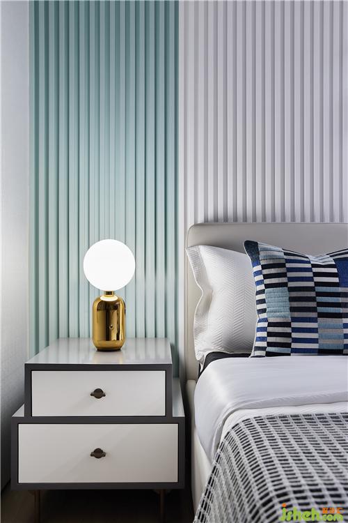 兒童房借由不同的藍綠搭配呈現(xiàn)出豐富的層次效果,無論是床頭柜,還是墻面裝置、懸浮小屋,無不流露出對積木拼接的活化運用。構(gòu)筑起這個歡樂的童話王國,讓其搭載孩童稚嫩而精彩的夢,為未來描繪無限暢想。