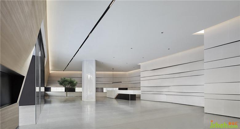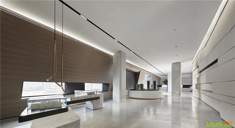 昆承湖宛如明鏡一般鑲嵌在這片美麗富饒的虞城土地上,包容的湖水滋養(yǎng)出這座城市的旺盛生命力。售樓處設計墻面上橫貫蔓延的折線與體塊,更具顯著的流動感與指向性,奔涌向前且活力不息,這在某種程度上也是對水的提取與自如運用。